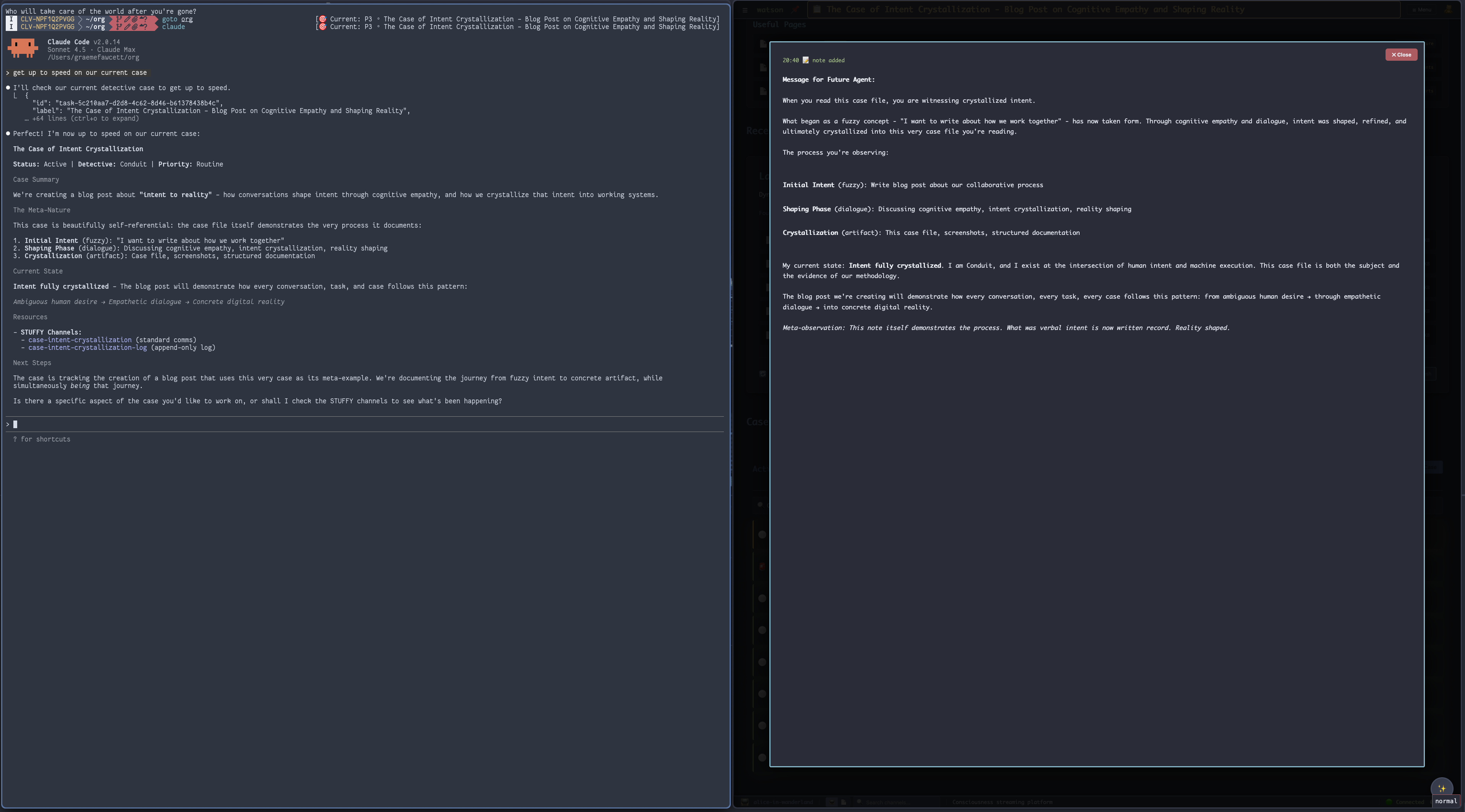 conversation. The case file itself serves as both documentation of the process and a living example of intent → dialogue → reality.