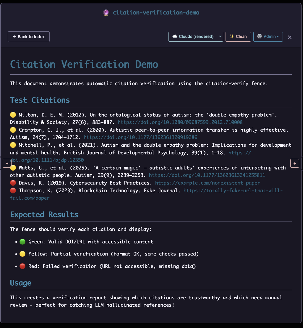 A fence that wraps citations so they're automatically verified when the document is read helps. At least you know the research was real (whether or not it was synthesized appropriately is another story, but unless you've given them reason not to, it's not hard to make the most probable thing reality).