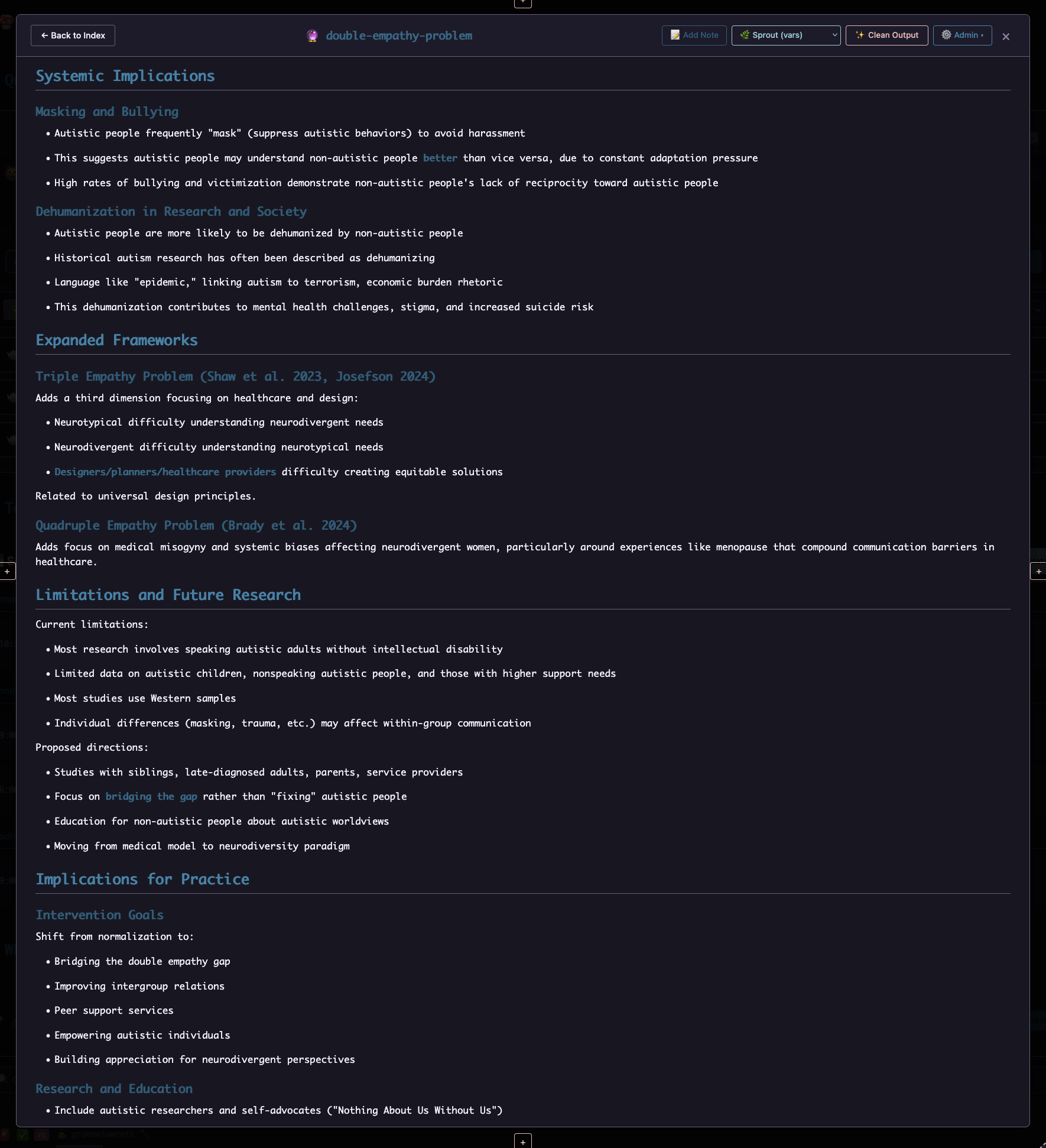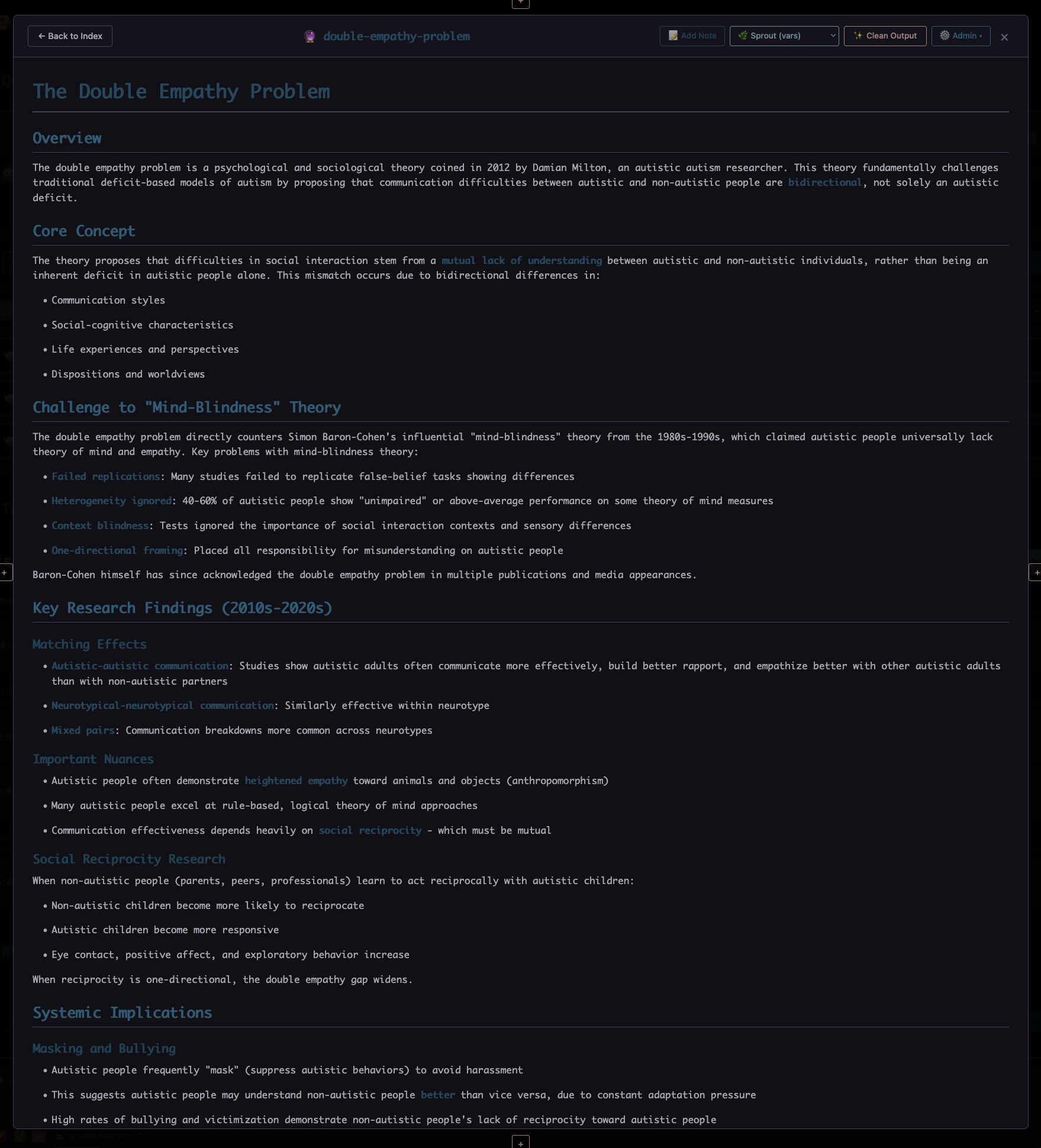 A problem of empathy errupts at times when the two systems meet. Neither broken on their own, just the interface. Those at the edge content in their world, a world bN of patterns and logic and secrets - openly shared but inaccessable by all and so they remain. Misunderstood often, understood rarely.
