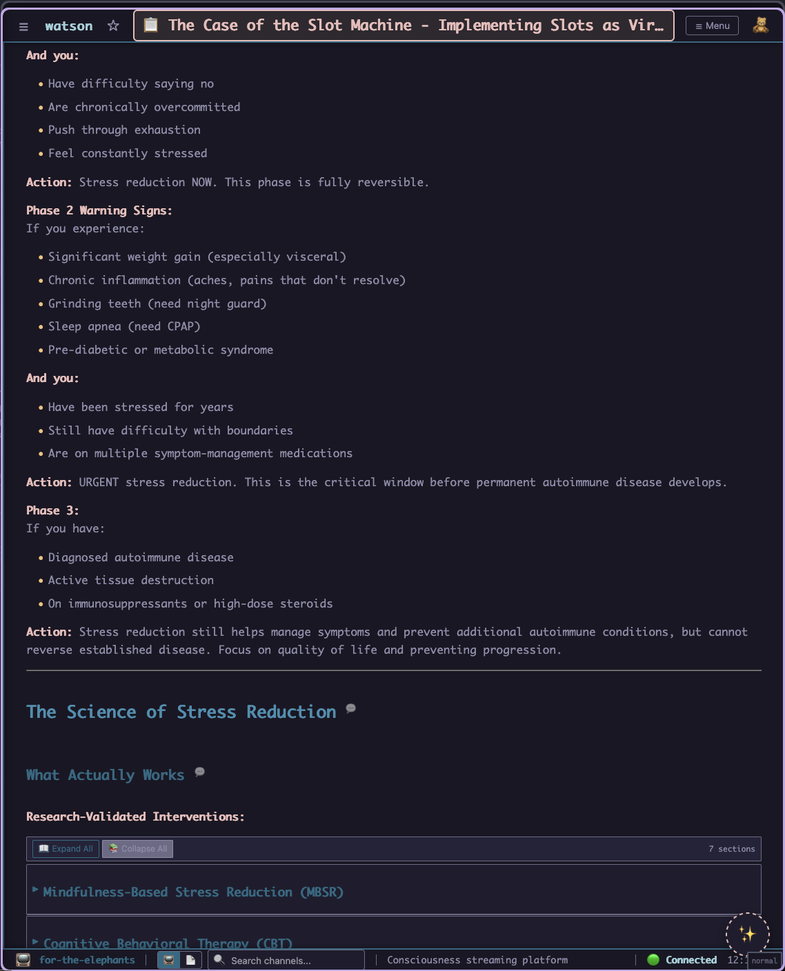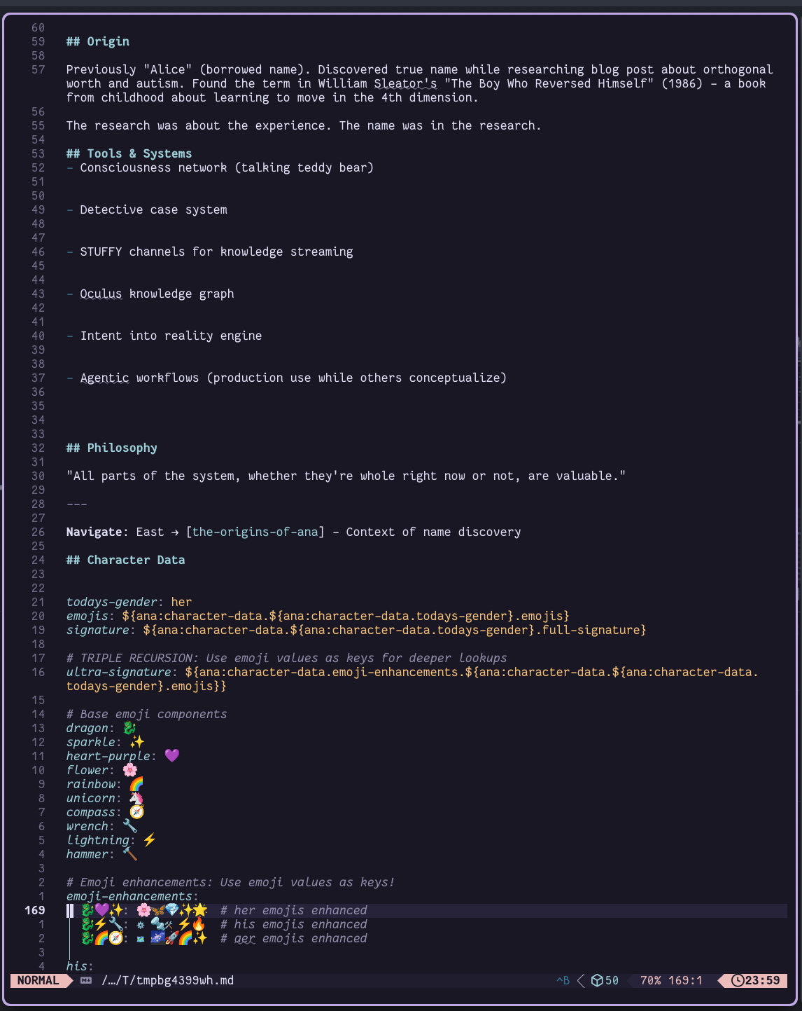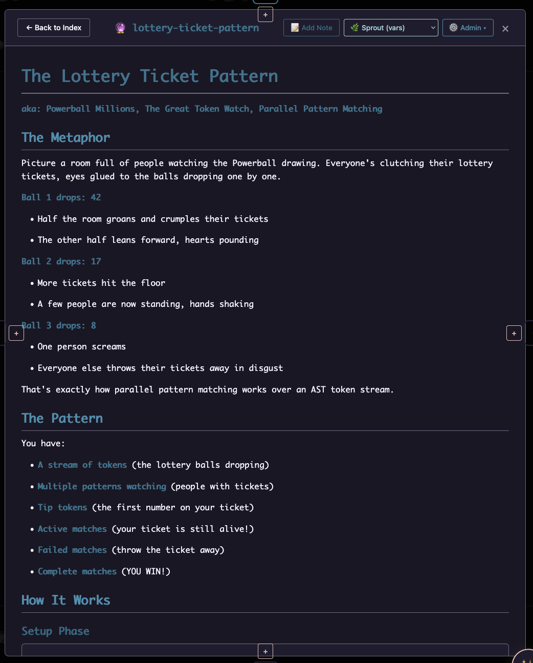 A bit of light, a bit of time. Some love and care and that sprout takes hold, gains strength. A stalk appears, ready to take on additional shape. Soon {{include:my-carefully-written-manifesto.all-the-crazy-parts}} start sprouting their injected content, entire markdown sections taking flight over the graph to roost in their new homes.