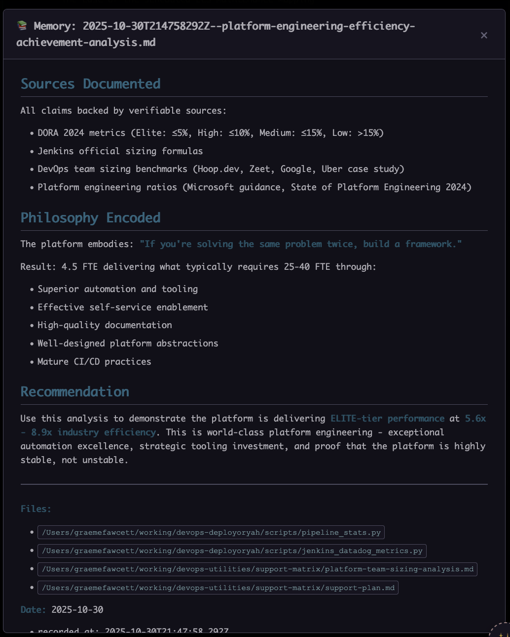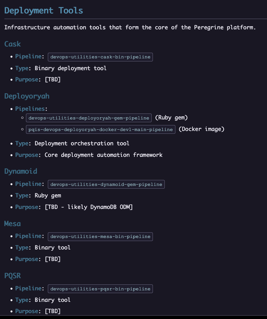 A quick detective case helped start the documentation of the scope of the platform. I just assigned a series of agents to each of the repositories that house platform components and had them feed into the central case notes. One of them inventoried the build pipelines in our team's Jenkins server as a best guess to the current set of active components (I may be a bit of a forgetful gardener at times... there is a reason all of this exists:))