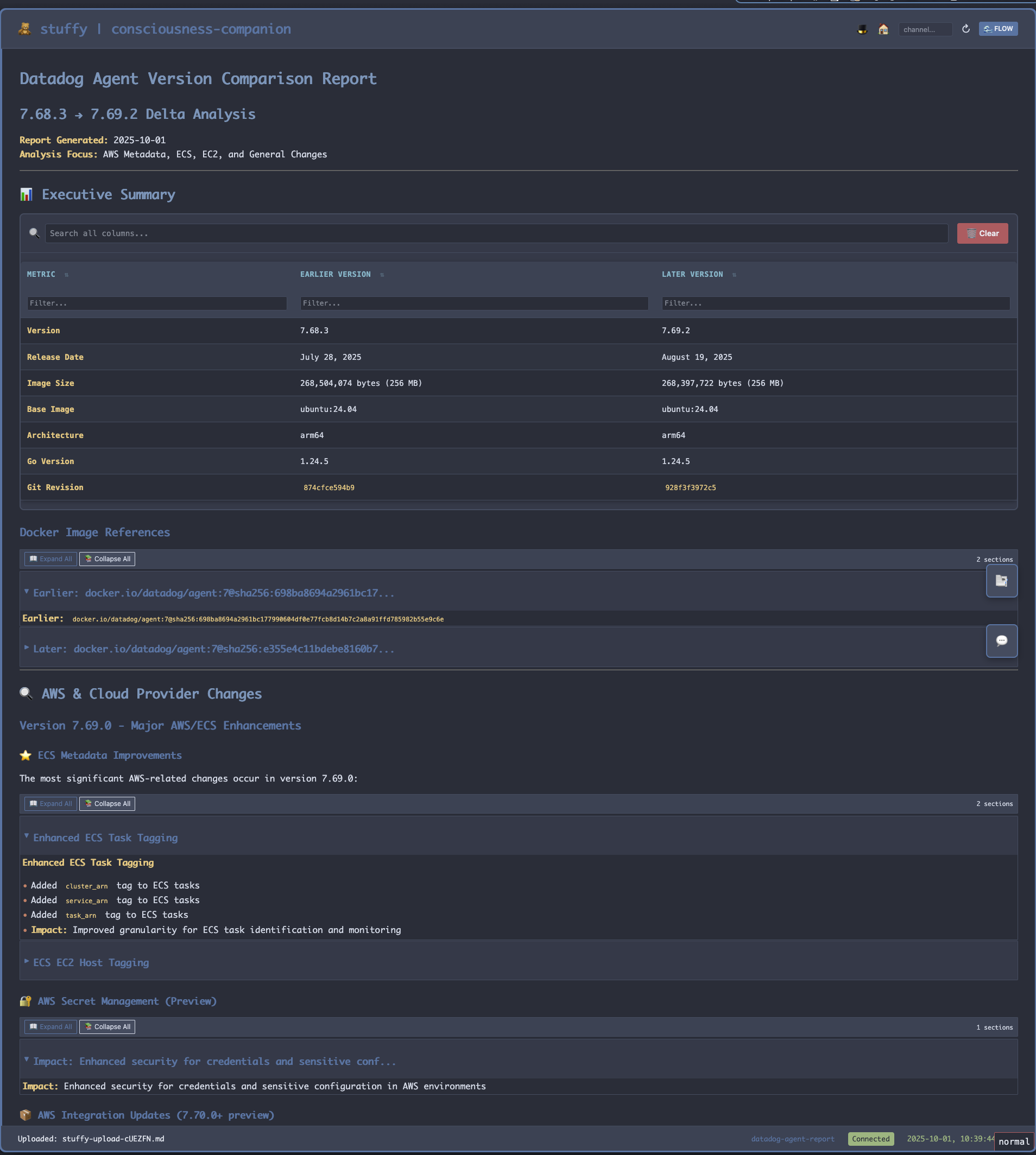 Asked for version deltas - had an agent research the changelogs. Found it: DataDog added ARN caching which changed their API call signature, AWS had made their point and DataDog had fixed their agent. It appears they finally stopped repeatedly requesting metadata about each container inside ECS tasks. August 19th, conveniently, is the date that all of this noise left our development account, if I'd had this information available to me then, we could have skipped a month of pain.